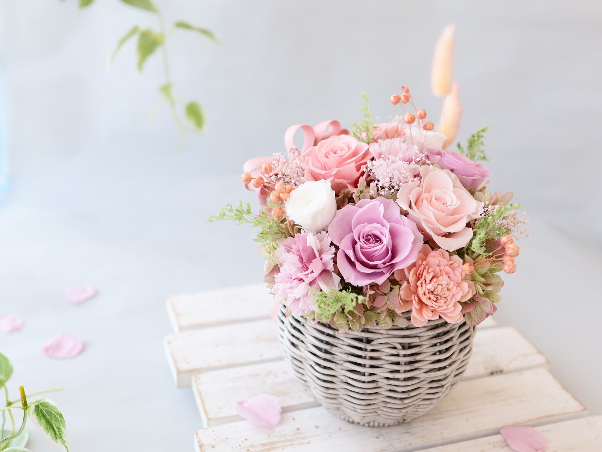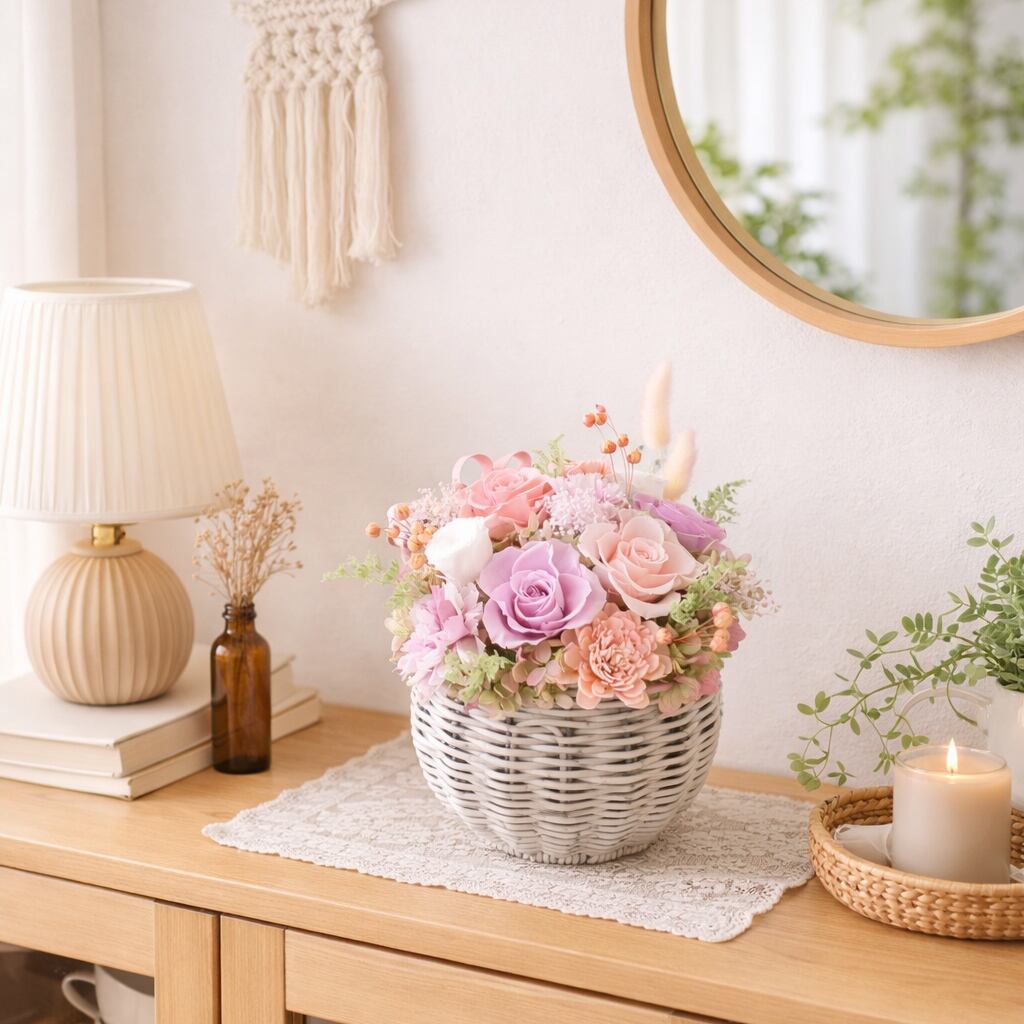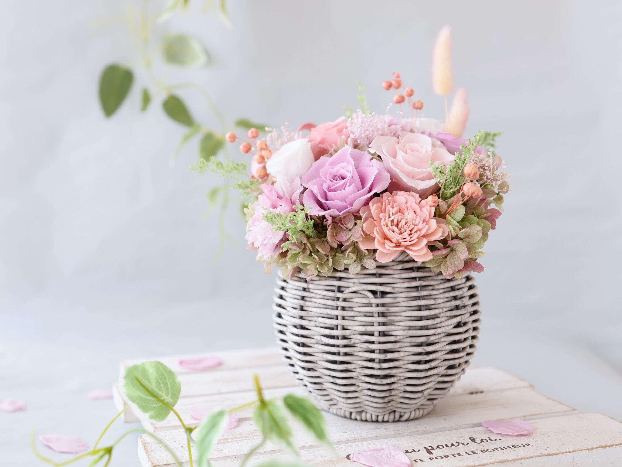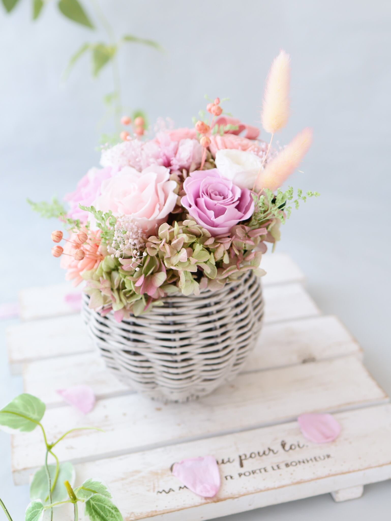 母の日ギフトにぴったりなバスケットアレンジをつくりました。
