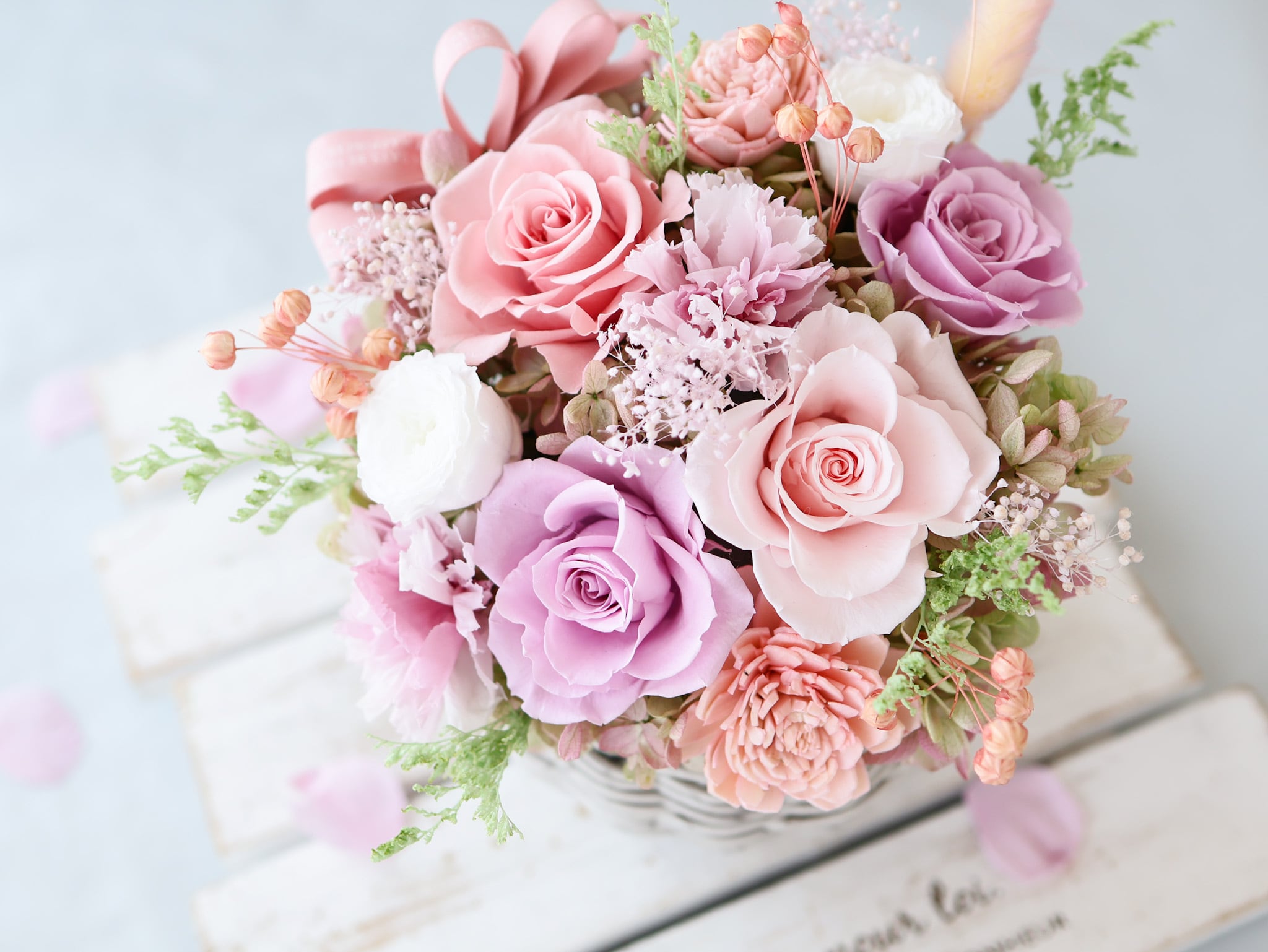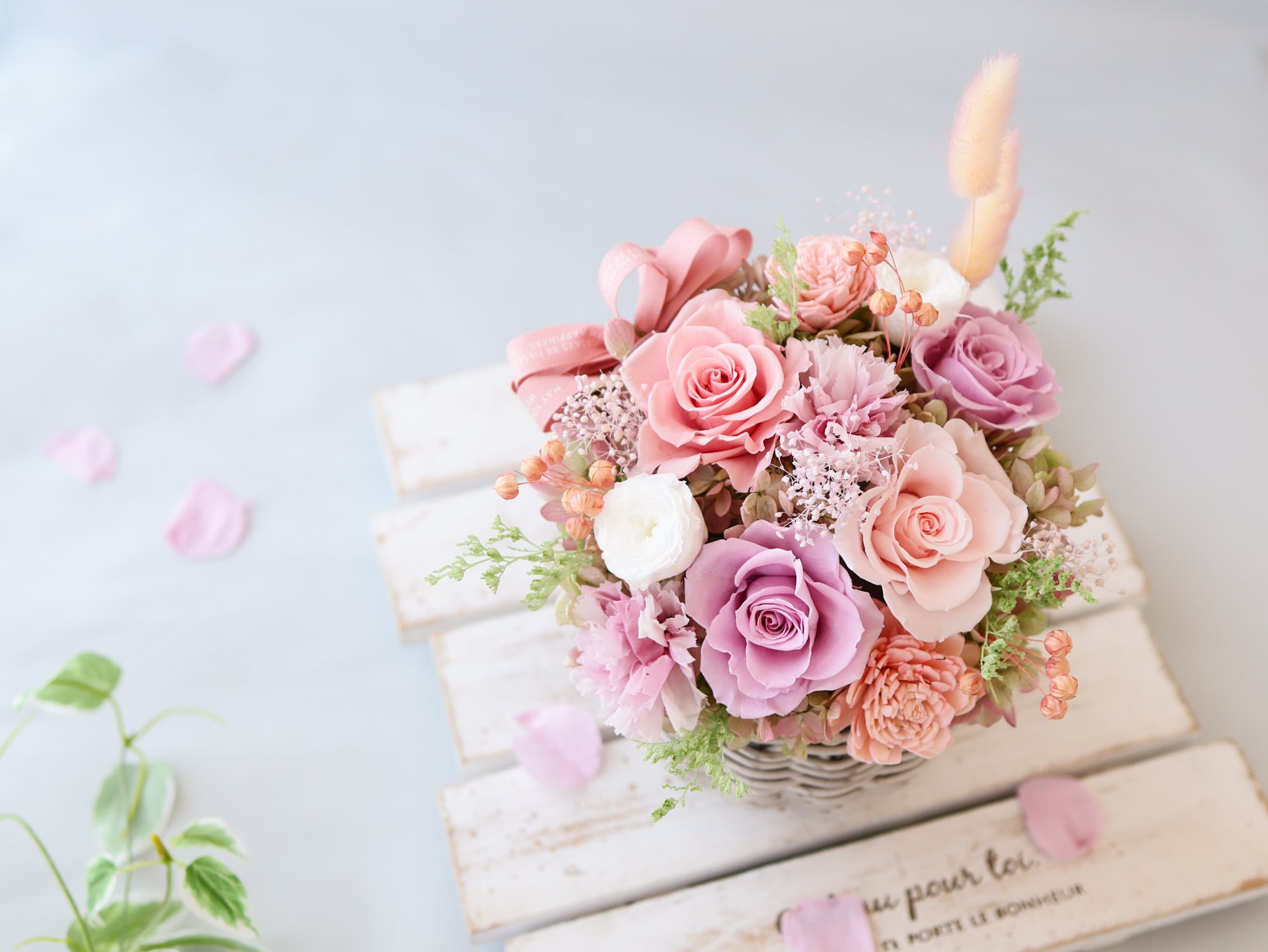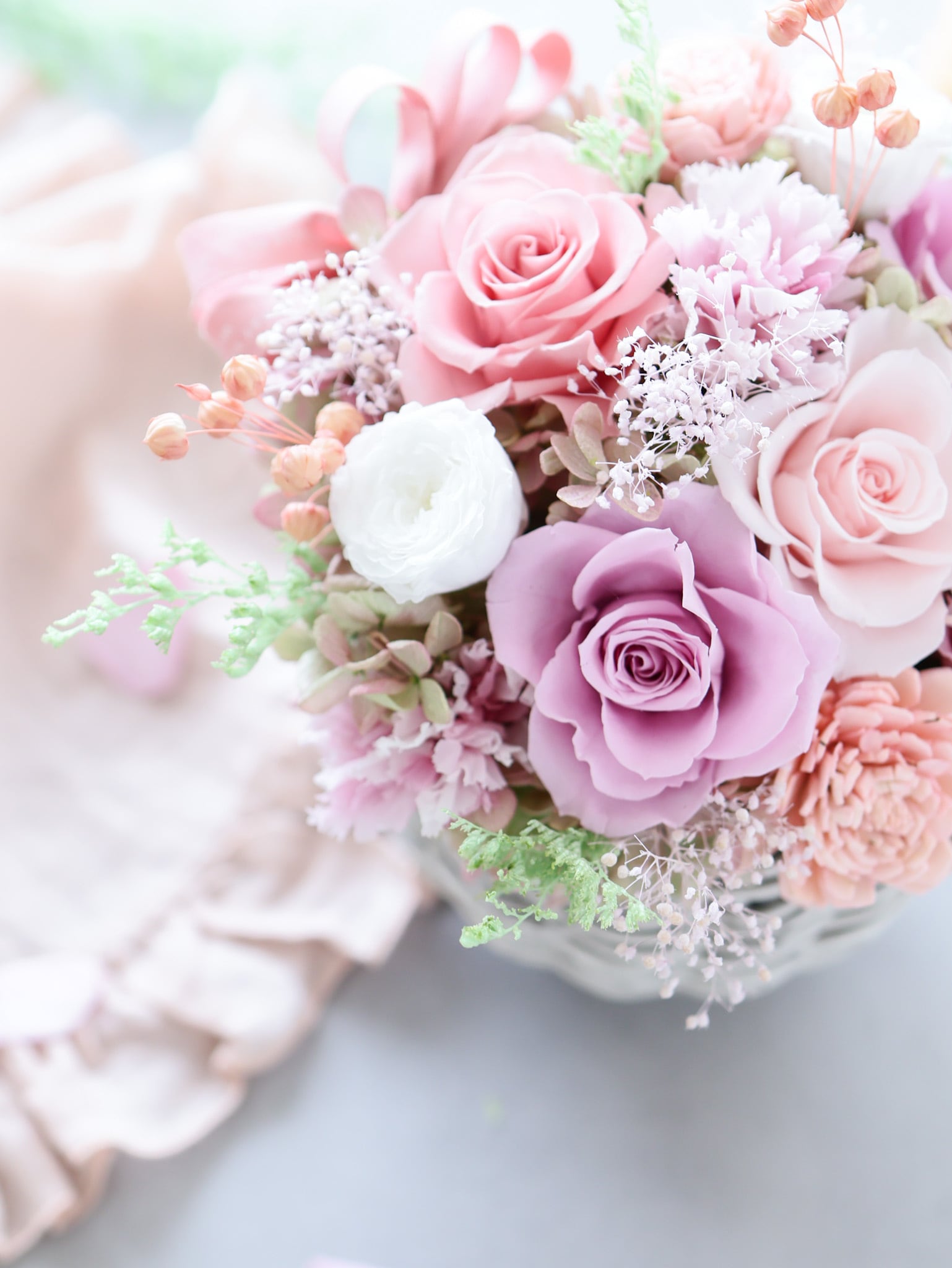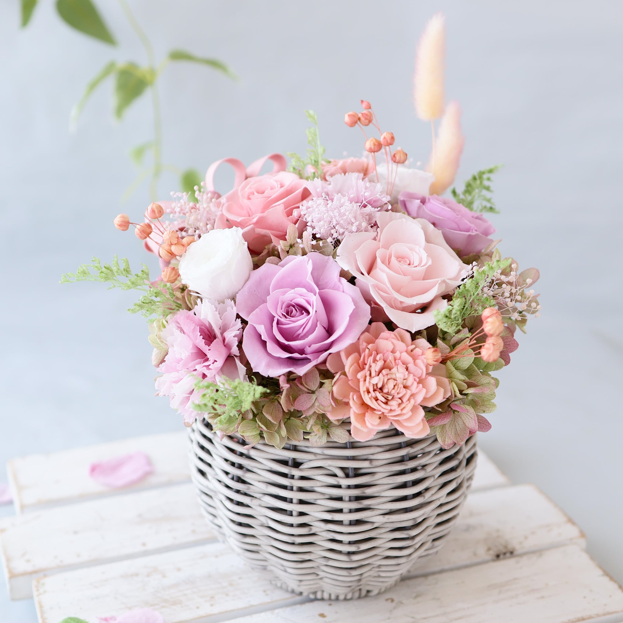 母の日ギフトにぴったりなバスケットアレンジをつくりました。