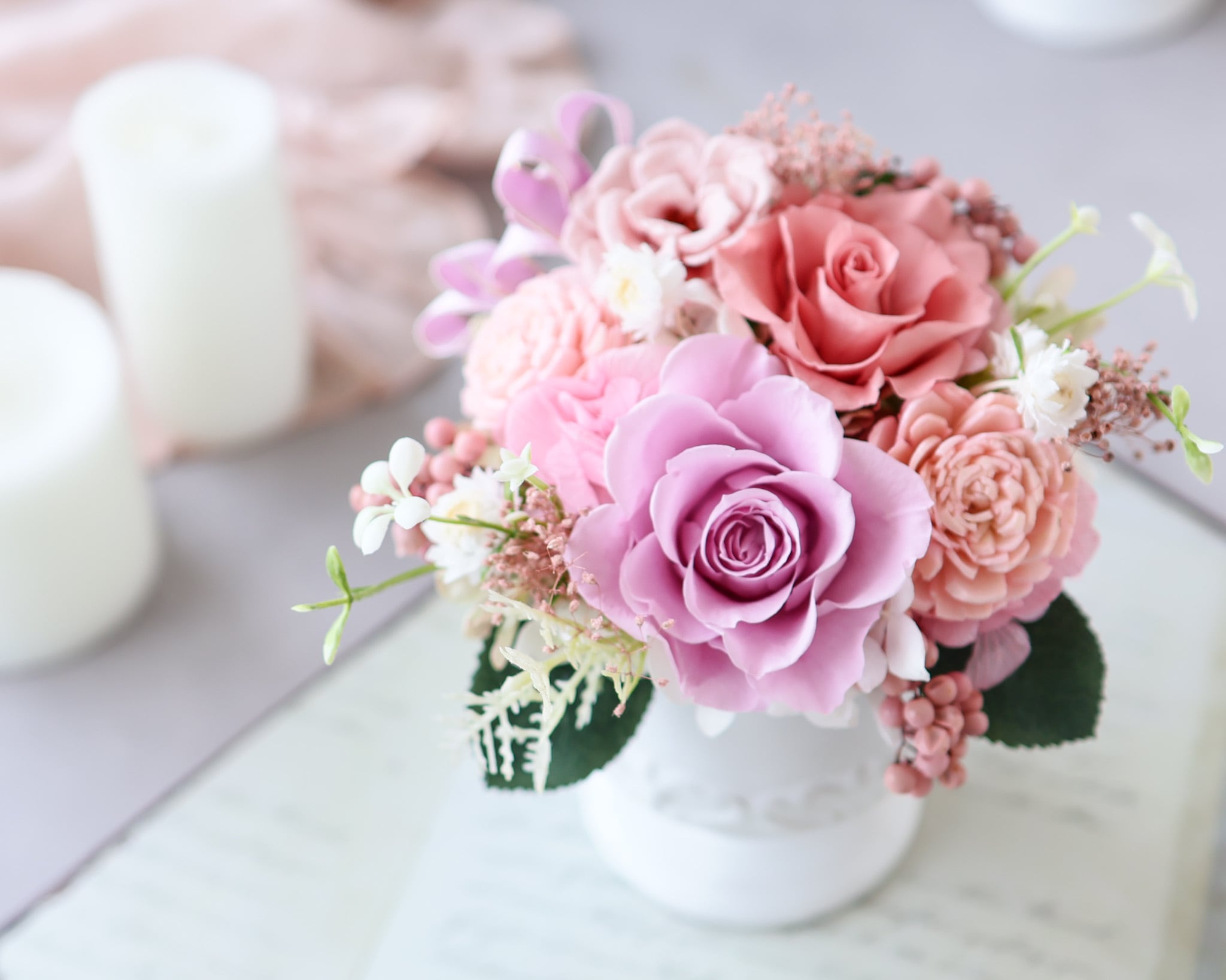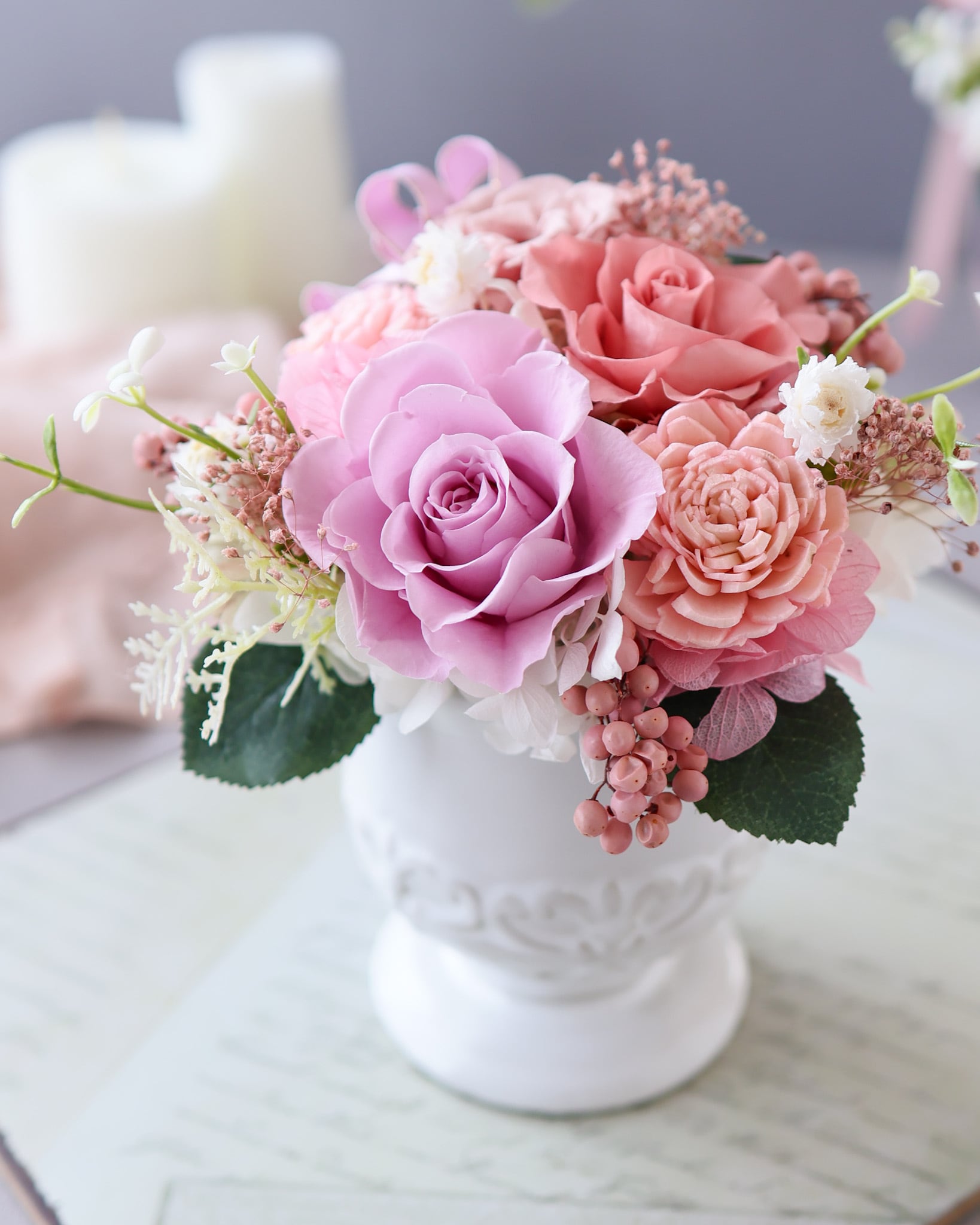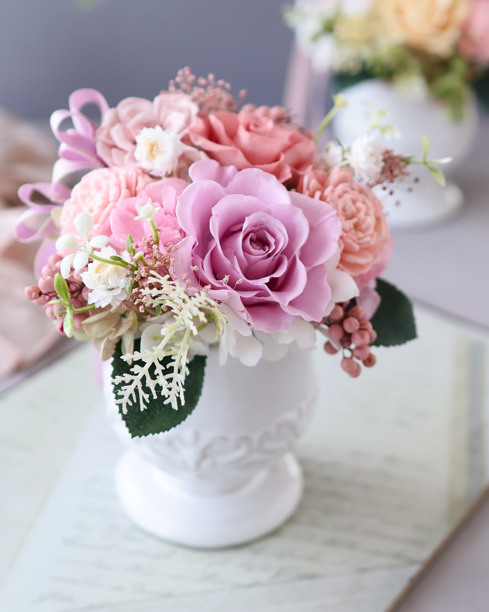 母の日ギフトにぴったりなエレガントな花器アレンジをつくりました。
