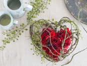 ハート型のバスケットにグリーンを絡ませてお洒落に仕上げました。